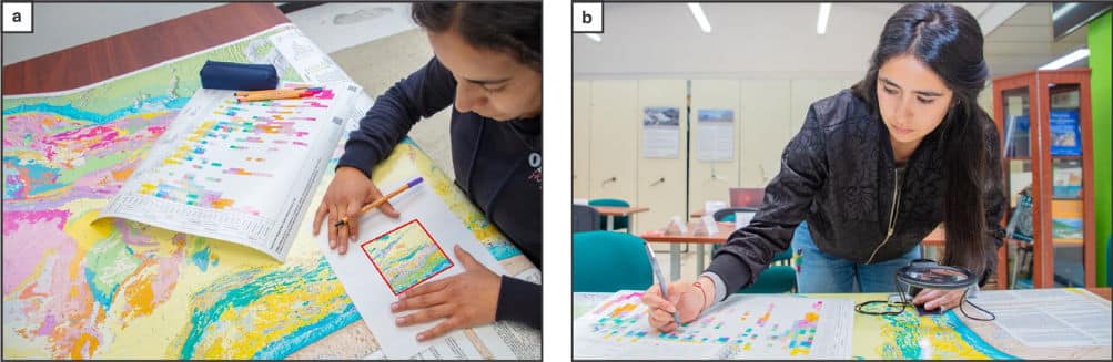 Pour s’assurer que tous les événements géologiques des Andes étaient représentés sur le GMSA et la possibilité de corréler les unités chronostratigraphiques avec les mêmes âges qui représentent un seul événement, l’atelier sur l’évolution géologique des Andes s’est tenu du 5 au 10 décembre 2016, animé par le professeur Victor A. Ramos de l’Université de Buenos Aires, Argentine (Fig. 1d). Au cours de cet atelier, le nombre d’unités chronostratigraphiques dans les Andes a été réduit de moitié, ce qui a rendu la carte beaucoup plus lisible. De plus, il était assuré que chaque événement tectonique serait représenté dans au moins un polygone sur la carte. Par exemple, le complexe de base Ojo de Colorado et Loma Alta Gabro ont été inclus – unités qui représentent la suture des terres accrétées à la proto–marge du Gondwana au cours du Paléozoïque.
